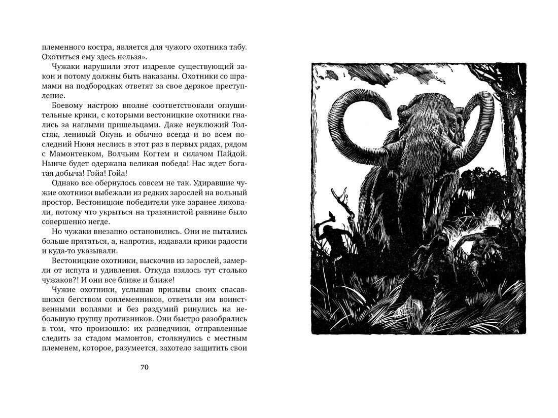 Повесть Шторха издается на русском языке уже в пятый раз, но лишь в первое издание 1968 года были включены классические иллюстрации Буриана - и вот теперь они напечатаны вновь, причем не только черно-белые, но и цветные. И художник, и писатель в своей работе опирались на доступные сто лет назад археологические данные о жизни людей каменного века. Но, честно говоря, историческая, да и художественная ценность повести сегодня сомнительна - текст давно устарел, так и не став детской классикой уровня \"Борьбы за огонь\". Чего не скажешь об иллюстрациях Буриана - они и по сей день смотрятся великолепно.