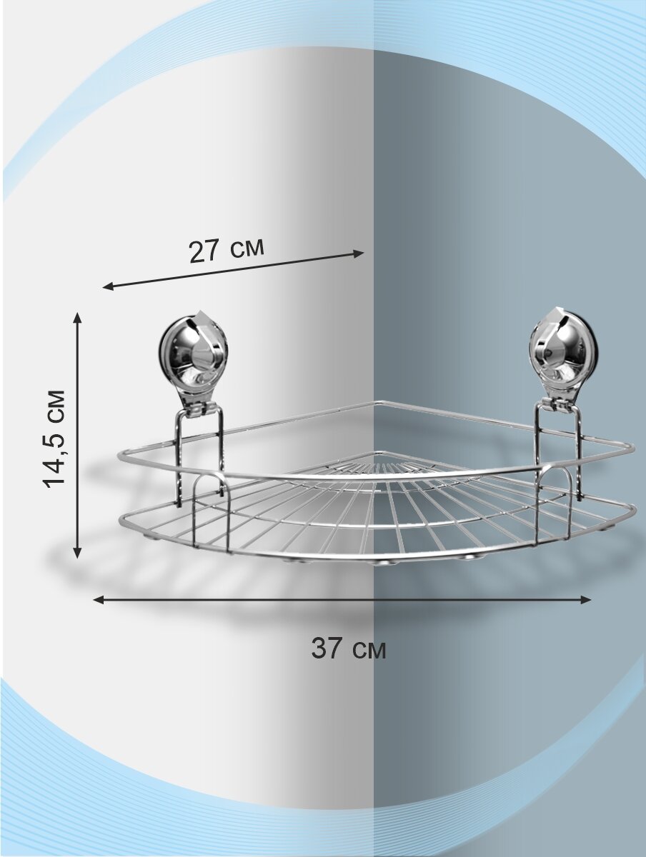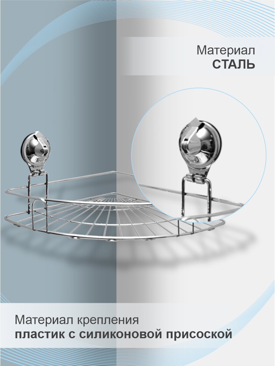Полка угловая на вакуумной присоске DELPHINIUM прекрасное решение для организации пространства. Наличие вакуумной присоски позволит легко и быстро разместить полку на глянцевой или очень гладкой поверхности. Компактная и прочная полка станет прекрасным решением для хранения бытовых мелочей и принадлежностей на кухне или в ванной комнате. Изготовлен из высококачественной стали с прочным хромированным покрытием. Универсальный стиль подойдет для любого интерьера. При монтаже важно следовать инструкции.