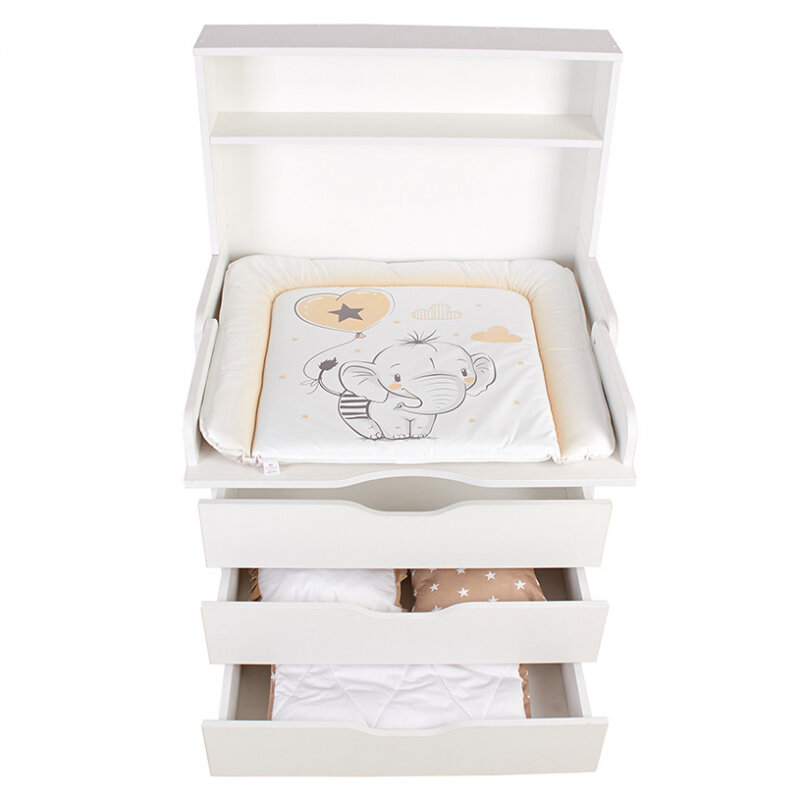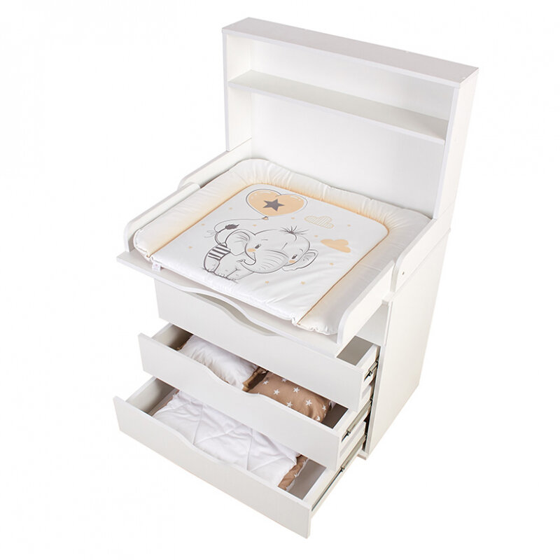 Комод Polini kids Simple 2581 со стеллажом - практичное, функциональное и компактное изделие, которое идеально впишется в интерьер детской комнаты.Безопасная, прочная и продуманная конструкция комода делает его легким и комфортным в эксплуатации, позволяя разместить все необходимые вещи ребенка в одном месте.Широкая откидная пеленальная поверхность позволяет с комфортом расположить все нужные аксессуары для пеленания малыша.Боковые ограждения предотвращают риск падения, а скругленные углы обеспечивают полную безопасность при проведении процедур. В сложенном состоянии пеленальная поверхность превращается в дополнительную полку и нишу для вещей. При желании ее можно легко демонтировать.На полке стеллажа будет удобно разместить самые необходимые гигиенические принадлежности, чтобы при уходе за малышом все было под рукой, и тогда не придется оставлять ребенка без присмотра ни на минуту, чтобы взять нужную вещь.Преимущества:откидная пеленальная доска;устойчивая конструкция;глубокие ящики;стеллаж;надежная фурнитура;экологически чистые материалы;классический дизайн.Комод имеет 4 вместительных ящика на шариковых направляющих, в которых удобно хранить детские вещи, аксессуары и игрушки.Изделие изготовлено из высококачественного ЛДСП - безвредного материала для малыша. Надежная и устойчивая конструкция гарантирует безопасность и удобство при эксплуатации.Продукция произведена в строгом соответствии с ГОСТ 16371, ТР ТС 025/2011 «О безопасности мебельной продукции» и Европейским стандартом качества для детских комодов EN 12221.Удобный, безопасный и практичный Комод Polini kids Simple 2581 со стеллажом гармонично впишется в интерьер детской комнаты и станет незаменимым помощником родителям в уходе за крохой.Размер пеленальной поверхности 72х73 см.Максимальная нагрузка – 11 кг.Возраст: от 0 -12 месяцев.Габариты изделия (ДхШхВ) – 80,4х46,7х136,7 см.