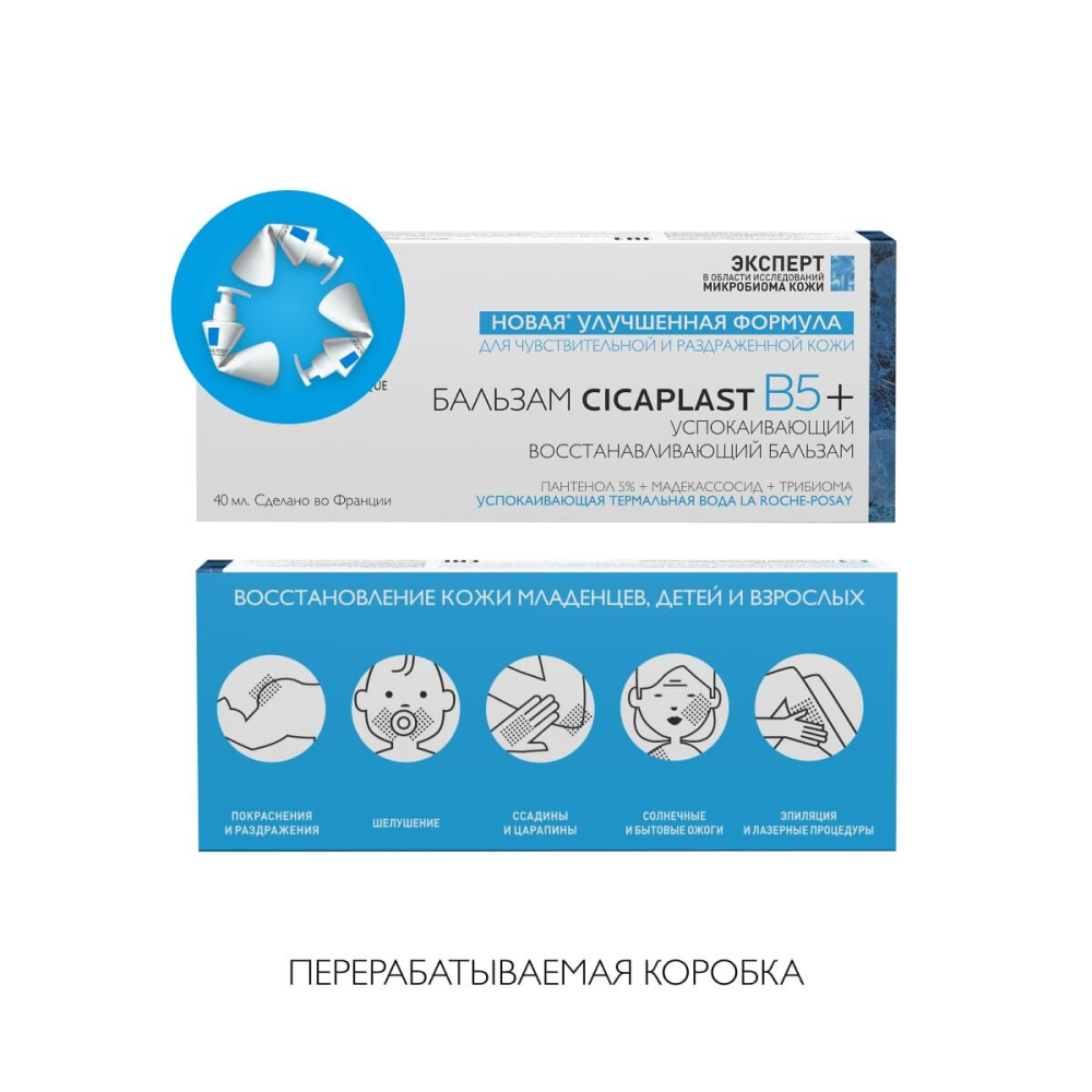 Новая улучшенная* формула бальзама Cicaplast B5+ вдохновлена наукой о микробиоме. Бальзам предназначен для чувствительной и склонной к раздражению кожи младенцев, детей и взрослых. Предназначен для чувствительной и склонной к раздражению кожи младенцев, детей и взрослых. Может наноситься на поврежденную кожу при трещинах, ссадинах, шелушении, потрескавшихся губах, солнечных ожогах, ожогах легкой степени, сухости кожи.