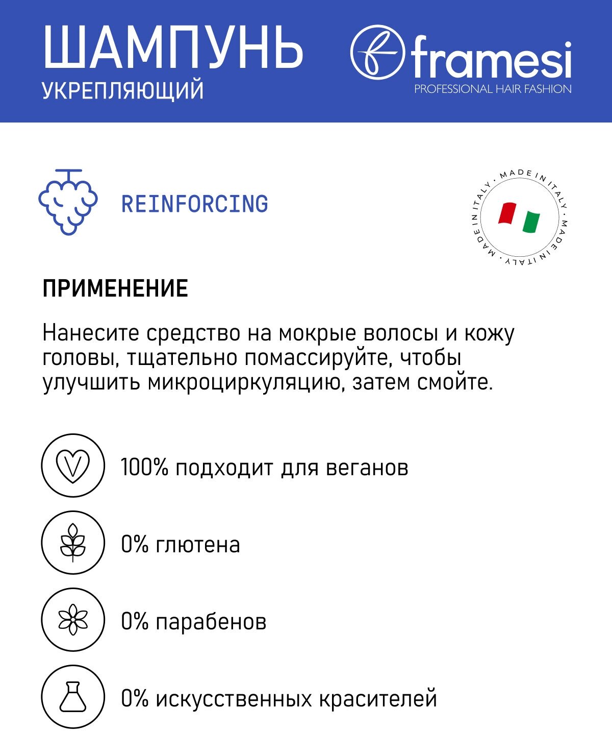 На сегодняшний день товар «Укрепляющий шампунь Reinforcing 250 мл Framesi (ЭХ99989436129)» можно купить с кешбеком в 1 магазине: Яндекс.Маркет