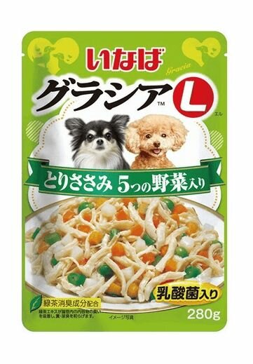 INABA GRACIA L Корм влаж.куриное филе с овощами в желе д/собак пауч 280г (139.1402)