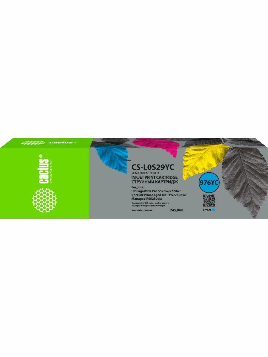 Картридж струйный Cactus CS-L0S29YC 976YC голубой (245мл) для HP PageWide P55250dw/P57750dw