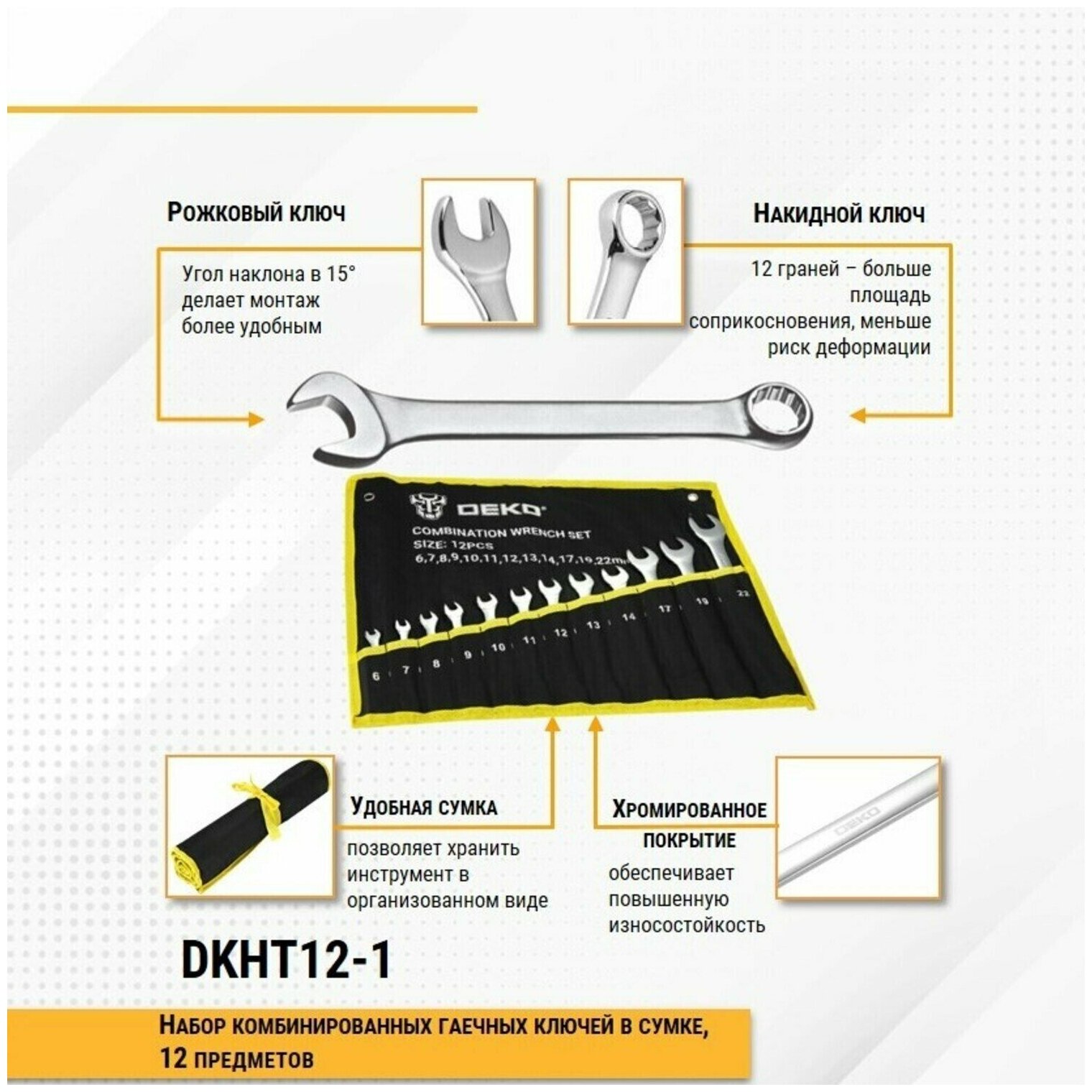 Набор комбинированных гаечных ключей DEKO DKHT12-1 в сумке (12 предметов)