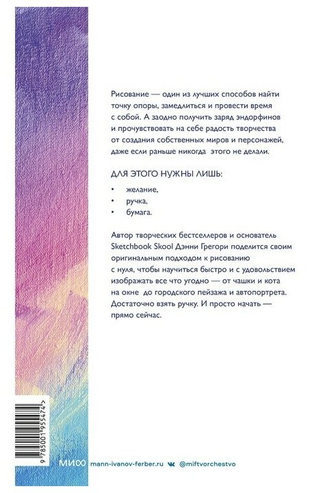 Многие из нас с детства убеждены, что для рисования нужен особый талант, а если его нет, то и пробовать не стоит. Автор творческих бестселлеров и основатель Sketchbook Skool Дэнни Грегори вас в этом переубедит. Он расскажет, с чего начать, и покажет, что ничего волшебного или сложного в рисовании нет — достаточно желания и самых простых материалов и инструментов. Вы увидите, что это вовсе не магия, подвластная единицам, а увлекательное и веселое занятие.