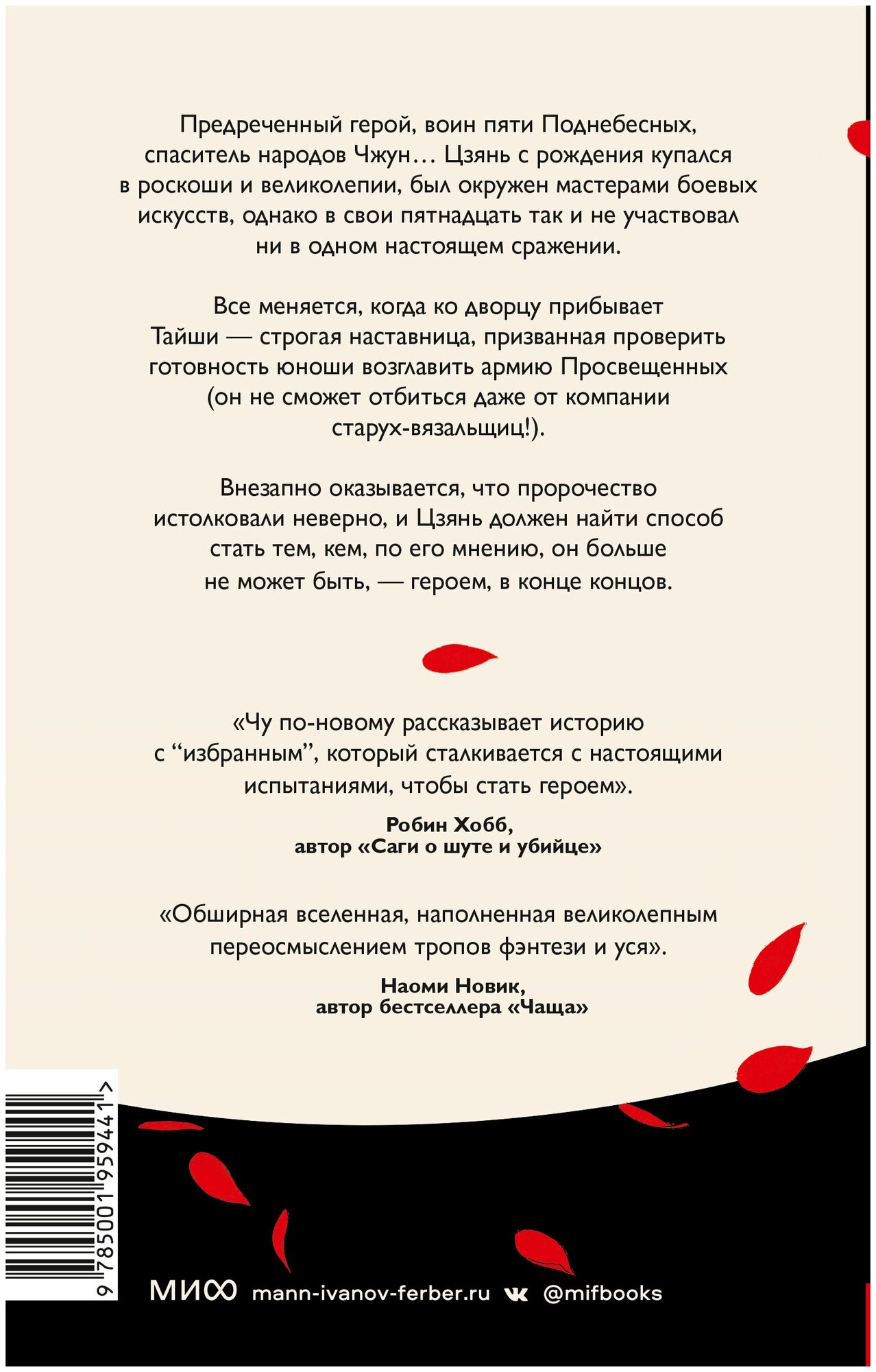 Предреченный герой, воин пяти Поднебесных, спаситель народов Чжун… Цзянь с рождения купался в роскоши и великолепии, был окружен мастерами боевых искусств, однако в свои пятнадцать так и не участвовал ни в одном настоящем сражении. Все меняется, когда ко дворцу прибывает Тайши — строгая наставница, призванная проверить готовность юноши возглавить армию Просвещенных (он не сможет отбиться даже от компании старух-вязальщиц!). Внезапно оказывается, что пророчество истолковали неверно, и Цзянь должен найти способ стать тем, кем, по его мнению, он больше не может быть, — героем, в конце концов.