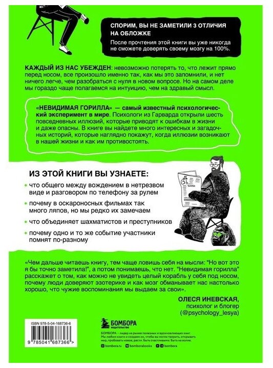 После прочтения этой книги вы уже никогда не сможете доверять своему мозгу на 100%. Один из самых знаменитых экспериментов в мире показал, что мы не замечаем весь мир вокруг и переоцениваем свою наблюдательность. Каждый из нас убежден: невозможно потерять то, что лежит прямо перед носом, все произошло именно так, как мы это запомнили, и нет ничего легче, чем разобраться с нуля в новом вопросе. Но на самом деле, мы гораздо чаще полагаемся на интуицию, чем на здравый смысл.