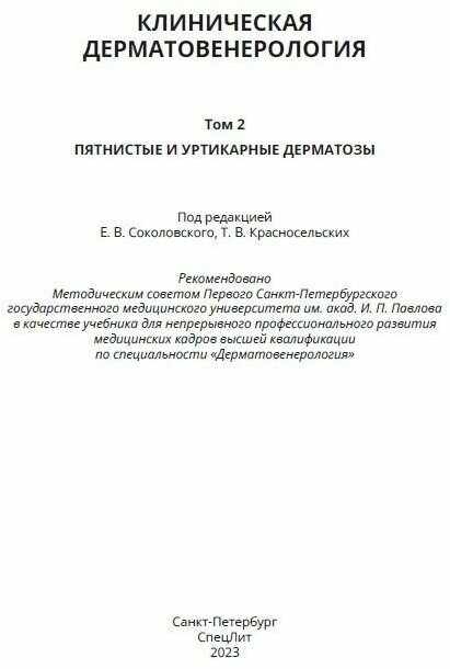 Клиническая дерматовенерология Том 2 Пятнистые и уртикарные дерматозы (Соколовский Евгений Владиславович, Ястребов Василий Васильевич, Красносельских Татьяна Валерьевна); СпецЛит, 2023