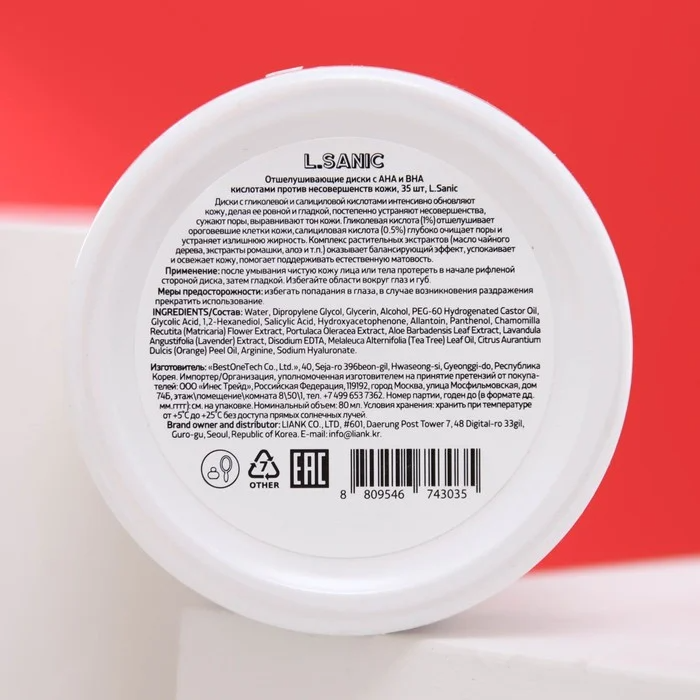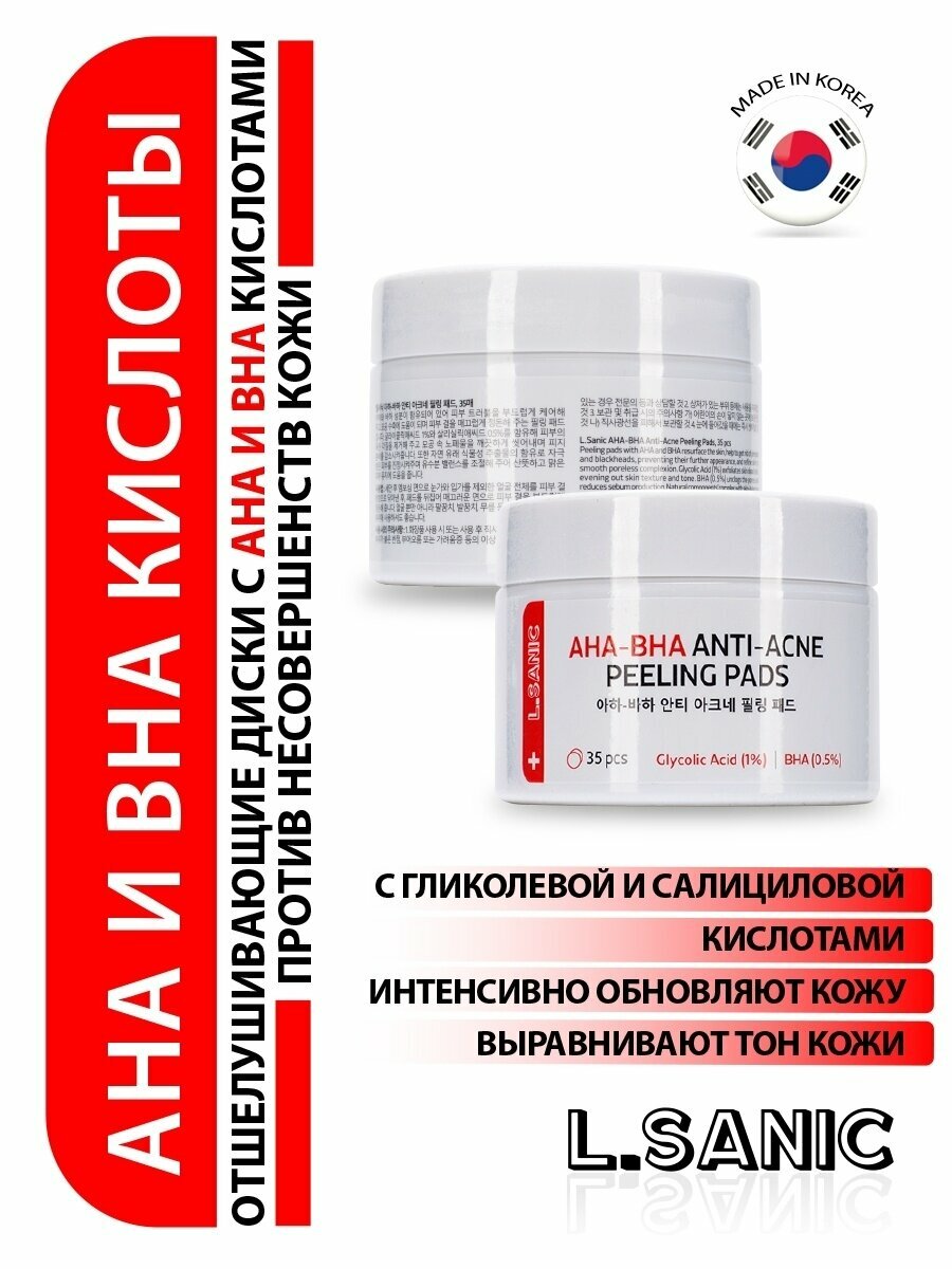 Отшелушивающие диски L.Sanic с AHA и BHA кислотами против несовершенств кожи 35шт (580189)