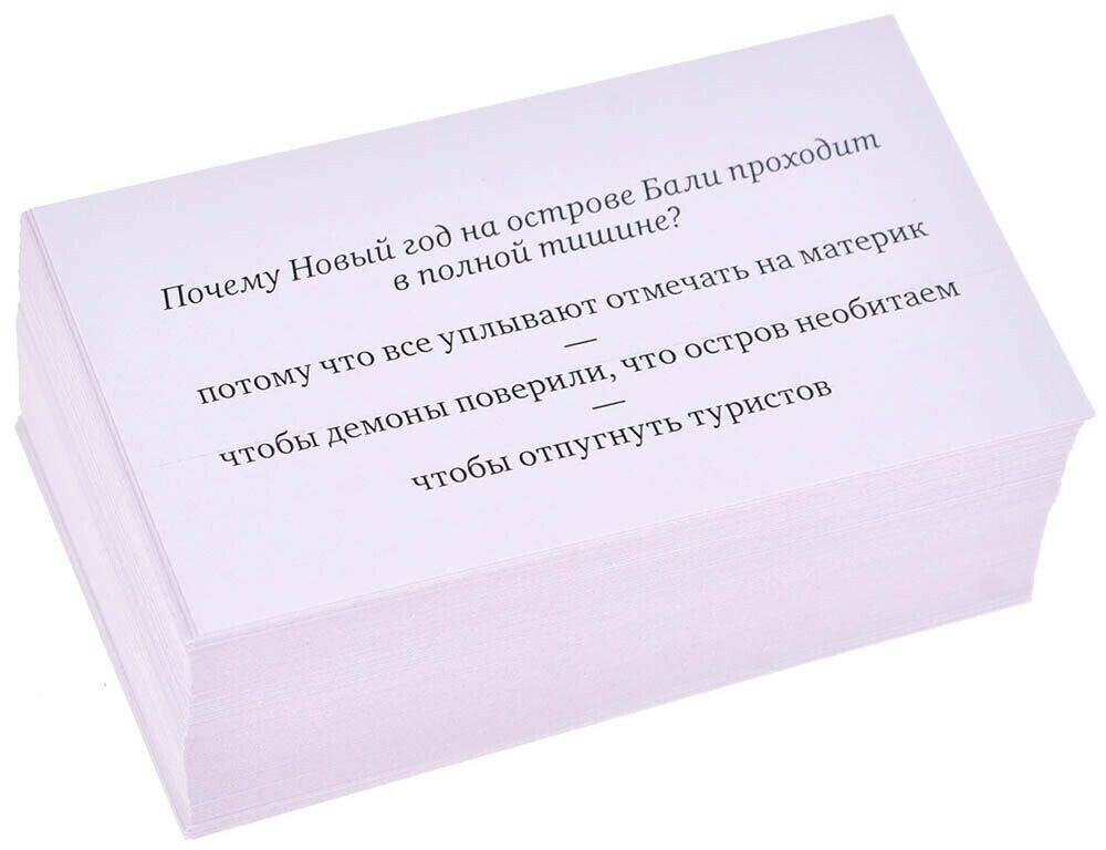 Набор карточек, посвящённый традициям и обычаям разных народов мира и тремя вариантами ответа, один из которых правильный. Проверьте познания ваших друзей и в первую очередь свои, чтобы быть эрудированным на все 100!