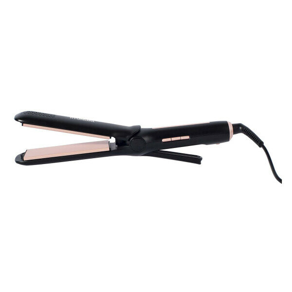 Данная модель способна работать в пяти температурных режимах с максимальным нагревом до 220 градусов и мощностью 45 Ватт. Подстроить его под конкретный тип шевелюры (даже под самый капризный) просто. Достаточно включить прибор кнопкой на боку рукоятки, а двумя другими, расположенными там же, выставить необходимую температуру. Все изменения и уровень текущего нагрева отображаются на дисплее, встроенном сбоку.