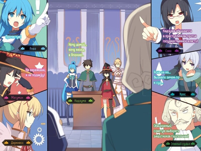 Сколько добра ни делай, а все выйдет боком. Кадзума спасает город Аксель от генерала армии короля демонов и ходячей крепости "Разрушитель", а его все равно хотят отдать под суд, чтобы после казнить! Причем соратницы как будто не пытаются его защитить, а только стараются приблизить печальный исход. Отсрочка от казни приносит новые беды: из ближайшего подземелья лезут неизвестные монстры, и королевский прокурор снова обвиняет во всем Кадзуму! Как же избежать несправедливого суда и следствия?
