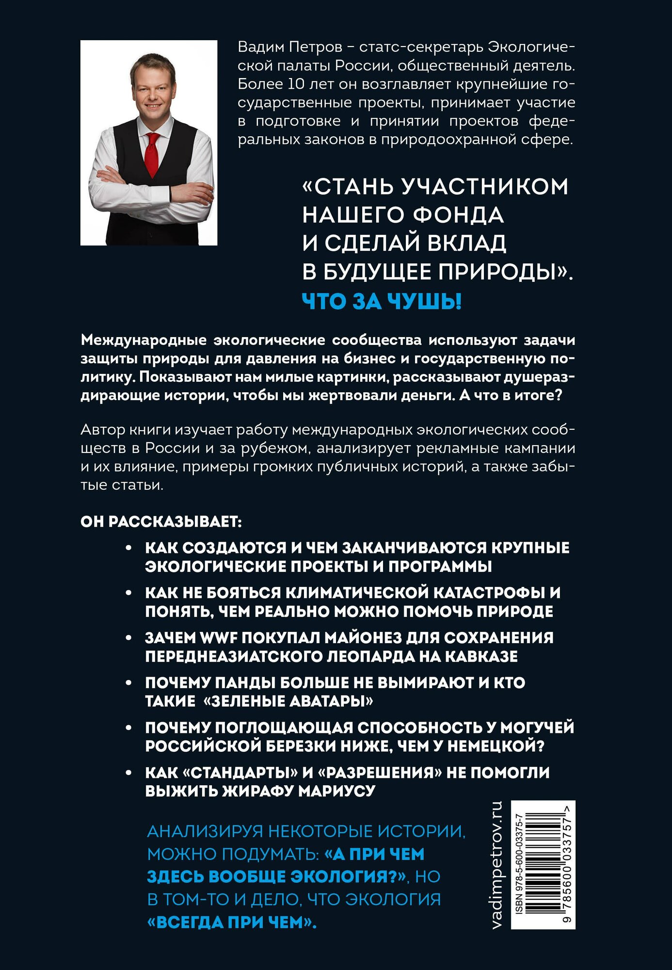 Автор книги изучает работу международных экологических сообществ в России и за рубежом, анализирует рекламные компании и их влияние, примеры громких публичных историй, а также забытые статьи.