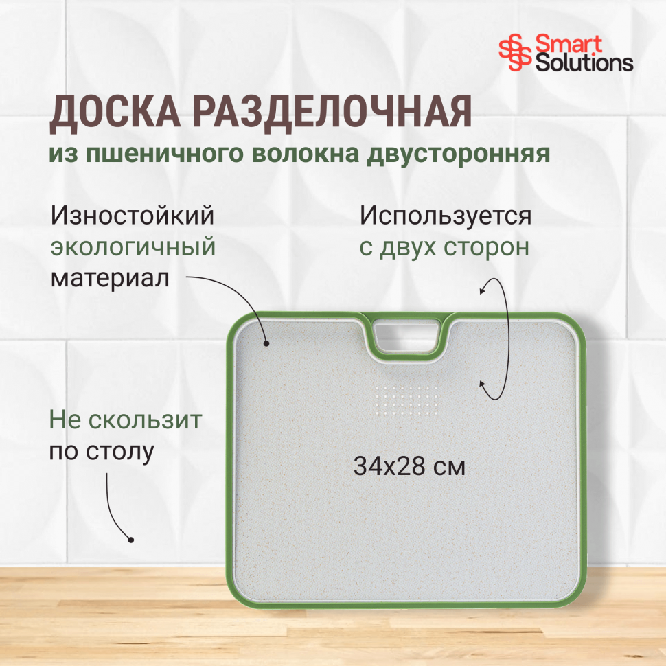Сервис сравнения цен СкидкаГИД предлагает сравнить цены на товар «Доска разделочная из пшеничного волокна двусторонняя ness 34х28 см светло-серая с зеленым кантом Smart Solutions (SS-CB-DS-GRN34-28)»