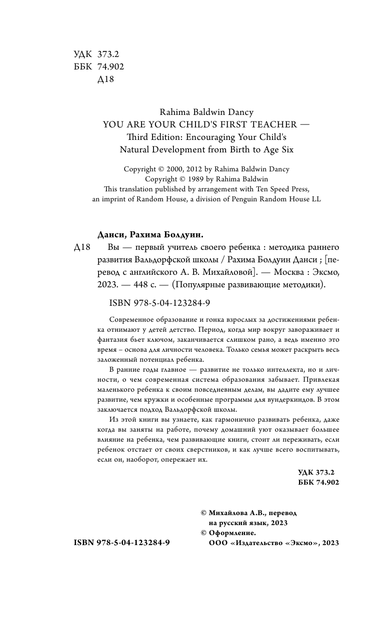 Вы - первый учитель своего ребенка. Методика раннего развития Вальдорфской школы (Рахима Болдуин Данси); Эксмо, 2022