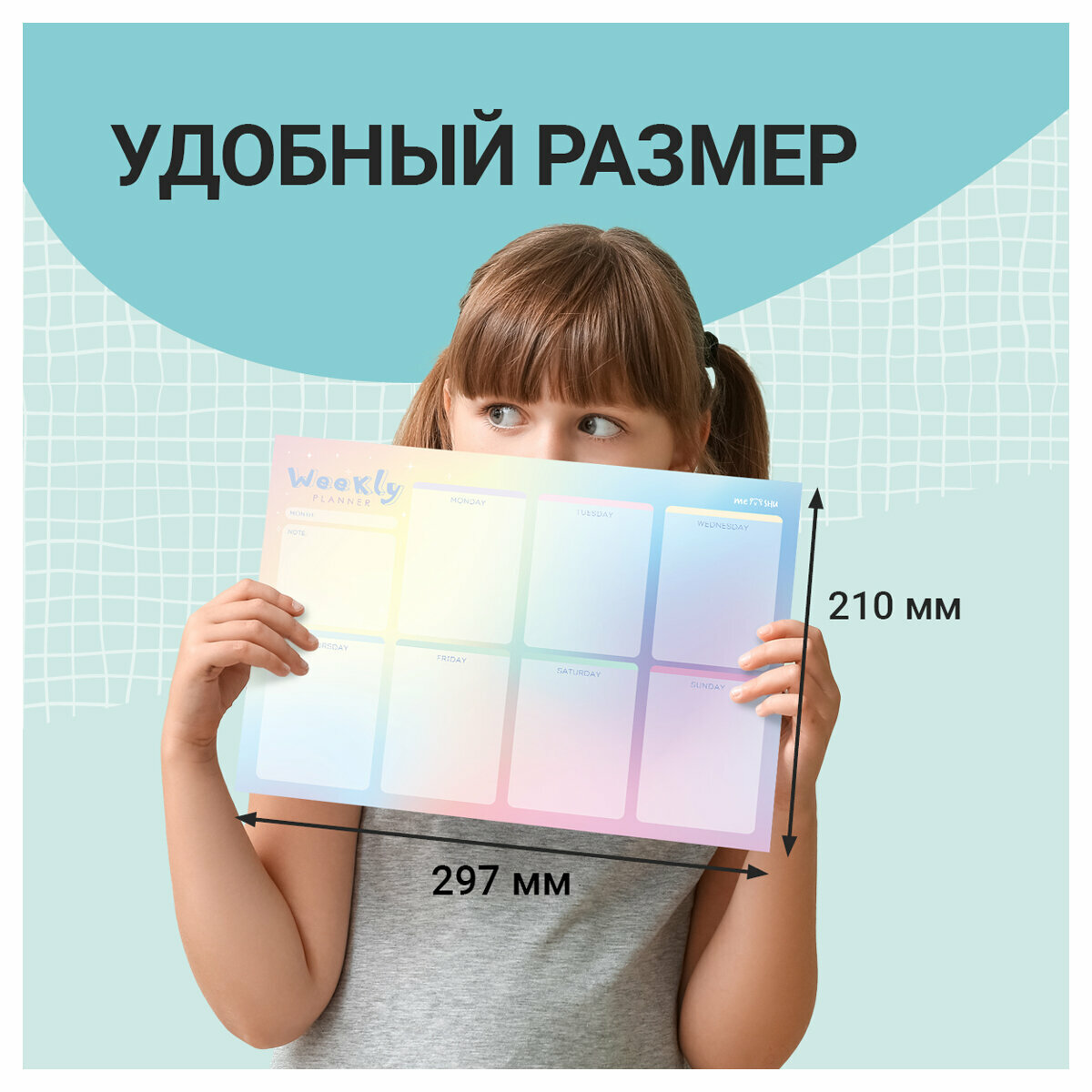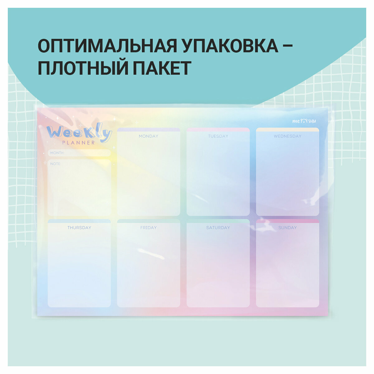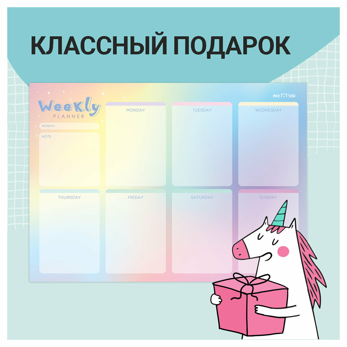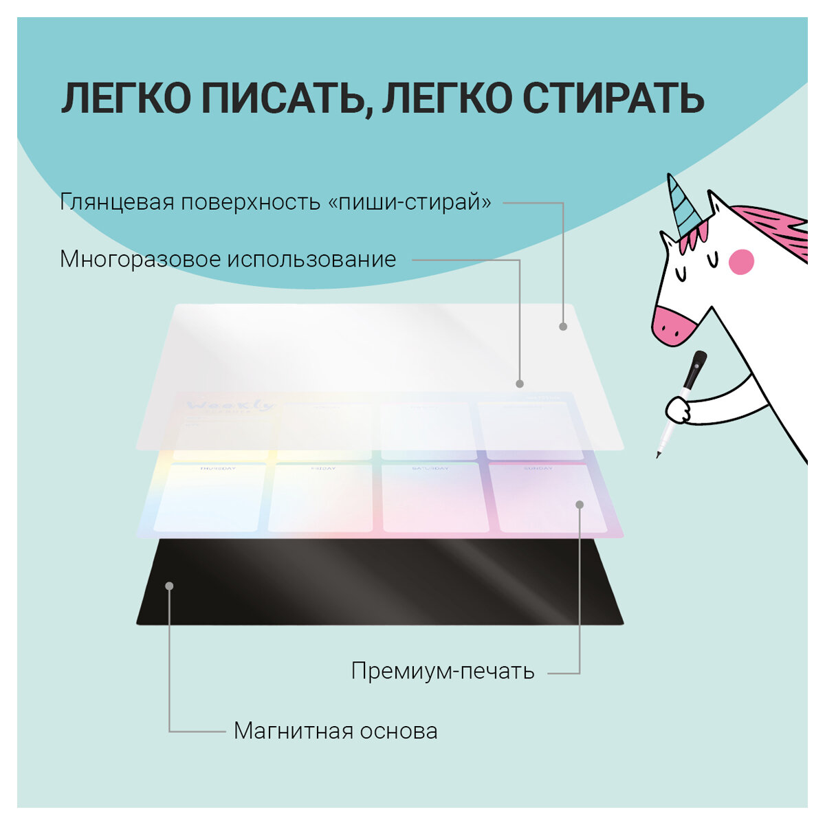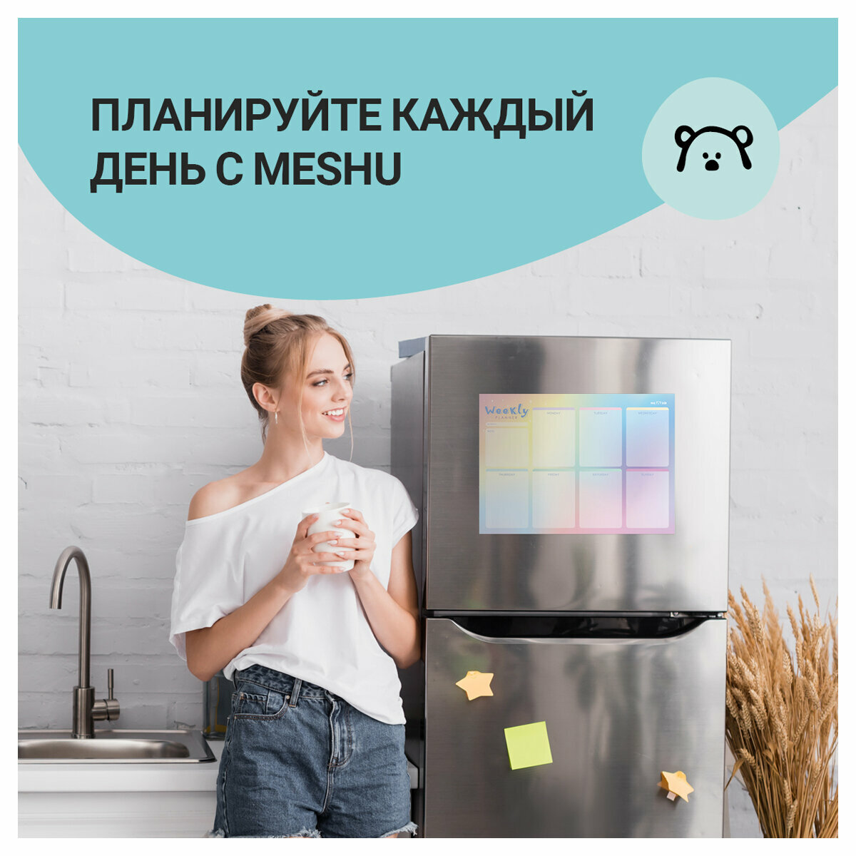 Магнитный планер на неделю Meshu "Gradient" станет незаменимым помощником в организации времени. Он поможет запомнить задачи, спланировать расписание и состыковать встречи с коллегами, друзьями или семьёй. Модель формата А4 выполнена из картона, покрытого магнитным винилом. Размер планера: 210х297 мм. Ламинация позволяет многократно писать и стирать надписи. К комплекту прилагается маркер со стирателем на магните, которым можно корректировать записи.