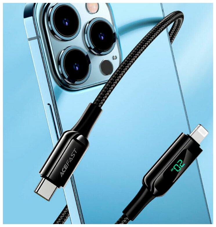 | Наименование модели | C6-01 USB-C to Lightning zinc alloy digital display braided charging data cable - Black |