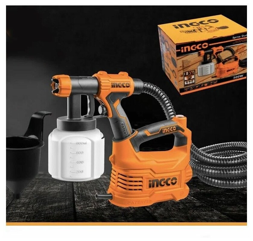 Краскопульт электрический Ingco SPG5008 профессиональной серии Industrial применяется для быстрого и равномерного нанесения красящих составов на различные поверхности. В комплекте мерная чаша для измерения вязкости, игла для прочистки сопла и плечевой ремень для удобства транспортировки и использования.