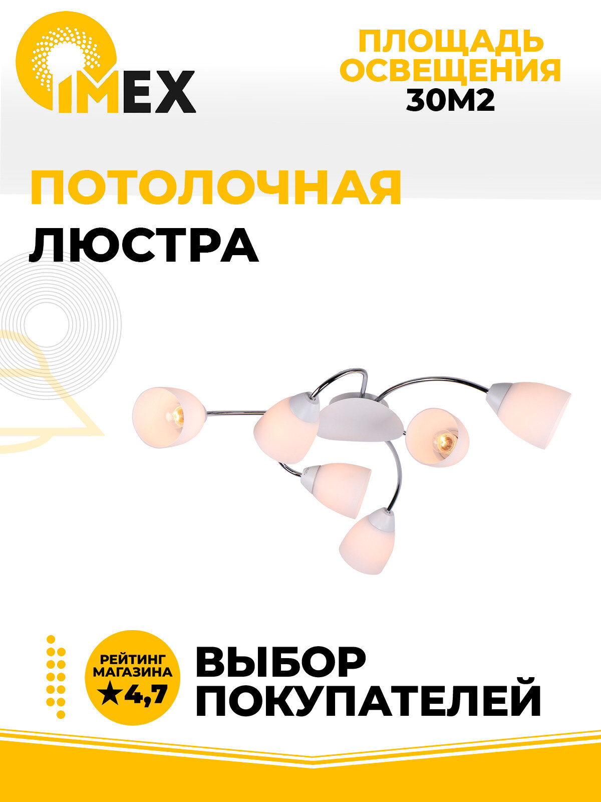 На сегодняшний день товар «Потолочная люстра IMEX MD.8410-6-S CH+WH» можно купить с кешбеком в 3 магазинах: Santehnika-room, donplafon, Яндекс.Маркет