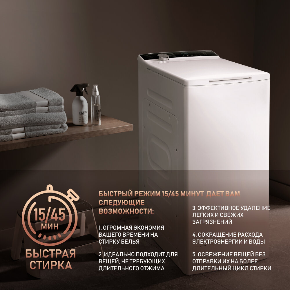 - Вертикальная загрузка - открывает целый ряд эргономических преимуществ, связанных с возможностью установки данной модели даже в самой малогабаритной квартире!