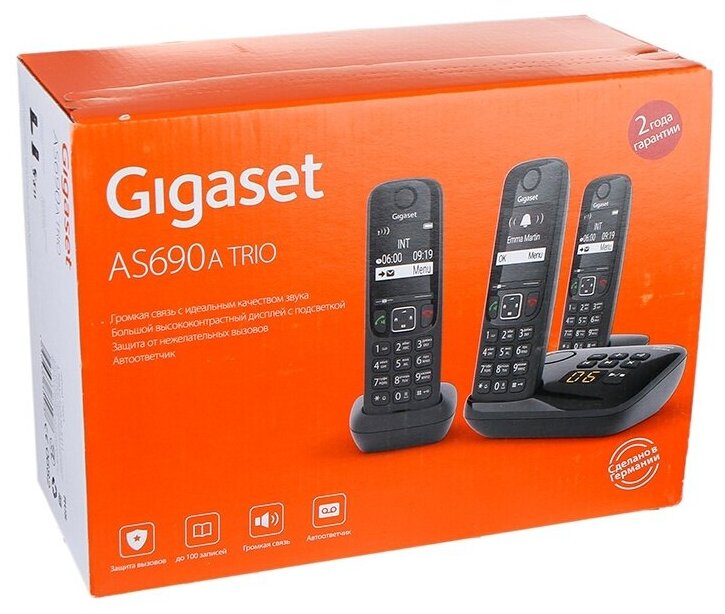 Телефон Gigaset AS690A Trio RUS черный (l36852-h2836-s311) AS690A Trio RUS черный (труб. в компл.:3шт) автооветчик АОН