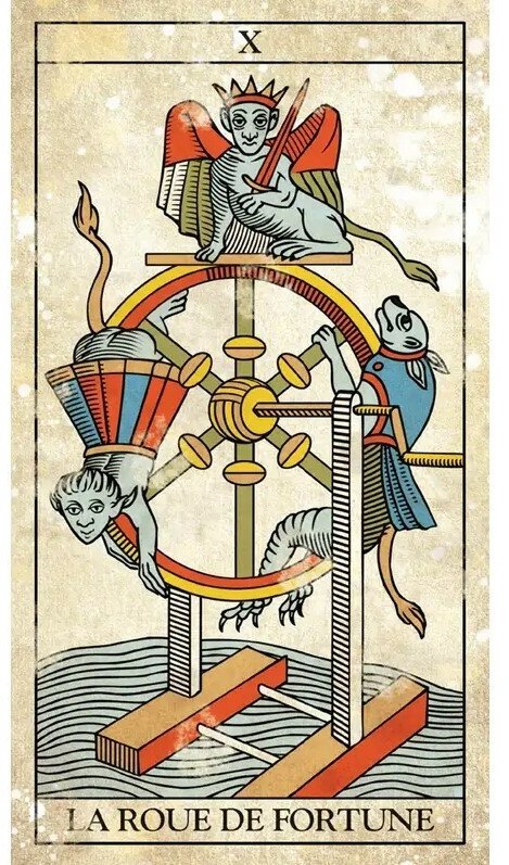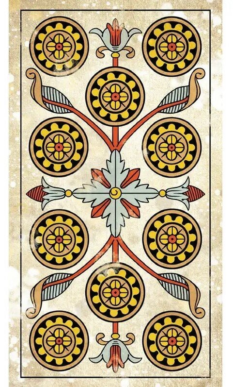 Это Марсельское Таро в винтажном стиле передаёт ощущение преемственности традиций. Карты, будто потрёпанные временем, напоминают о многих поколениях рук, грубых или нежных, тасующих, играющих, гадающих. С этой колодой сама история стучится в нашу дверь, позволяя нам стать её частью.