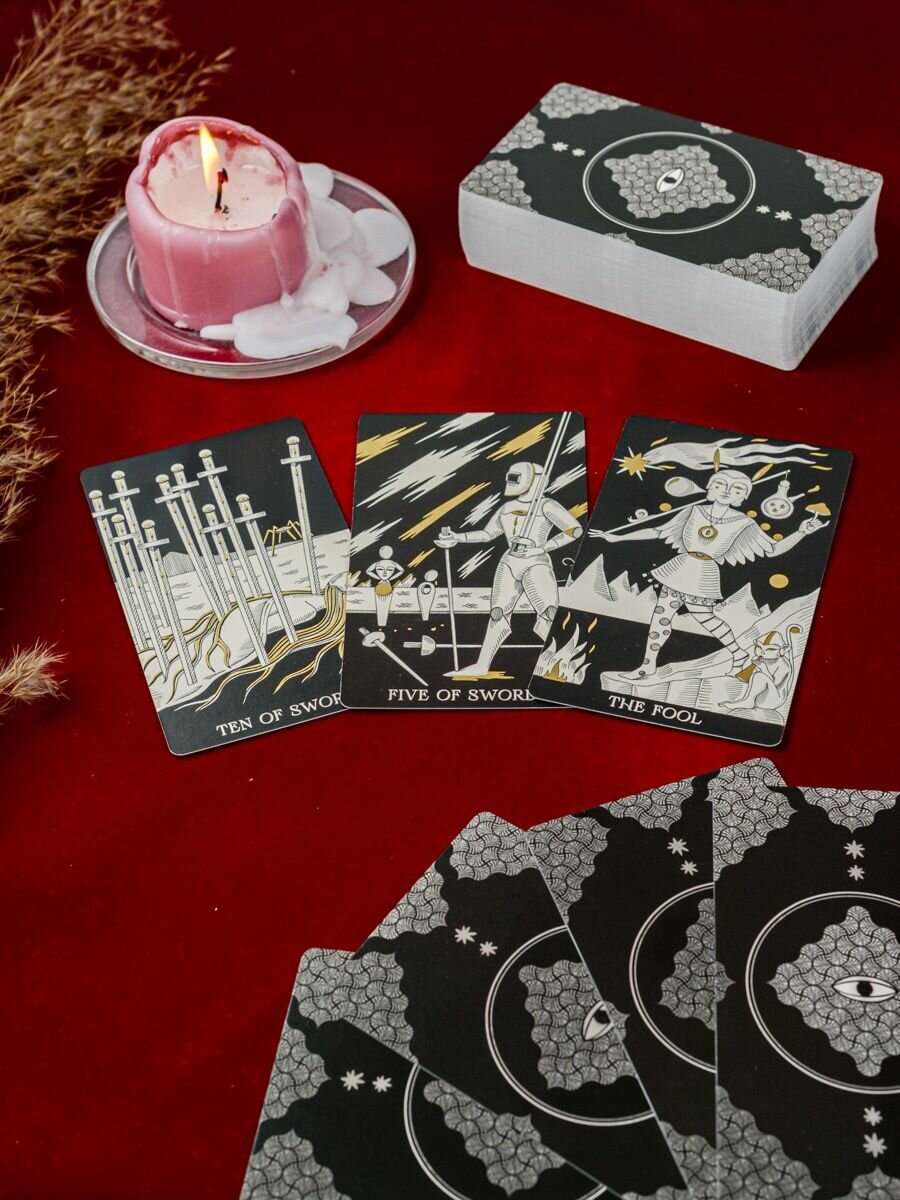 -  Мешкова Марина- 30 декабря 20225/5 Прелестная колода, в черно-бело-золотом исполнении. Качество: плотный картон, скорее матовый, не блестят, как зеркало, что тоже нравится. Мне показалось, что эта рисовка напоминает рисунки Патрика Валенсы, есть в этом и юмор и в то же время прорисованы интересные знаки, на которые можно обратить внимание при трактовке. Лично мне колода очень понравилась. Видеообзор прилагаю).