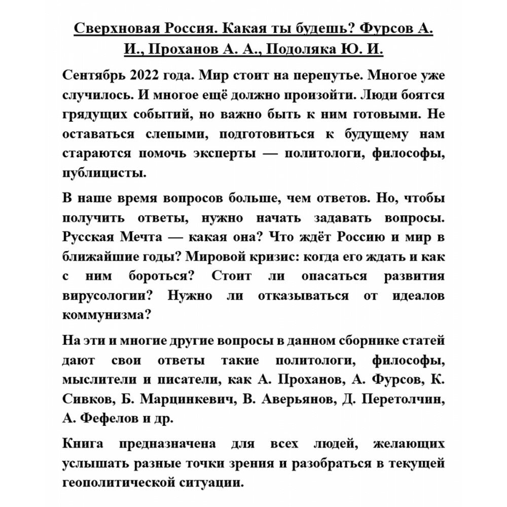 Сверхновая Россия. Какая ты будешь? (Фурсов Андрей Ильич. Проханов Александр Андреевич. Подоляка Юрий Иванович. Марцинкевич Борис Леонидович); Наше Завтра, 2022