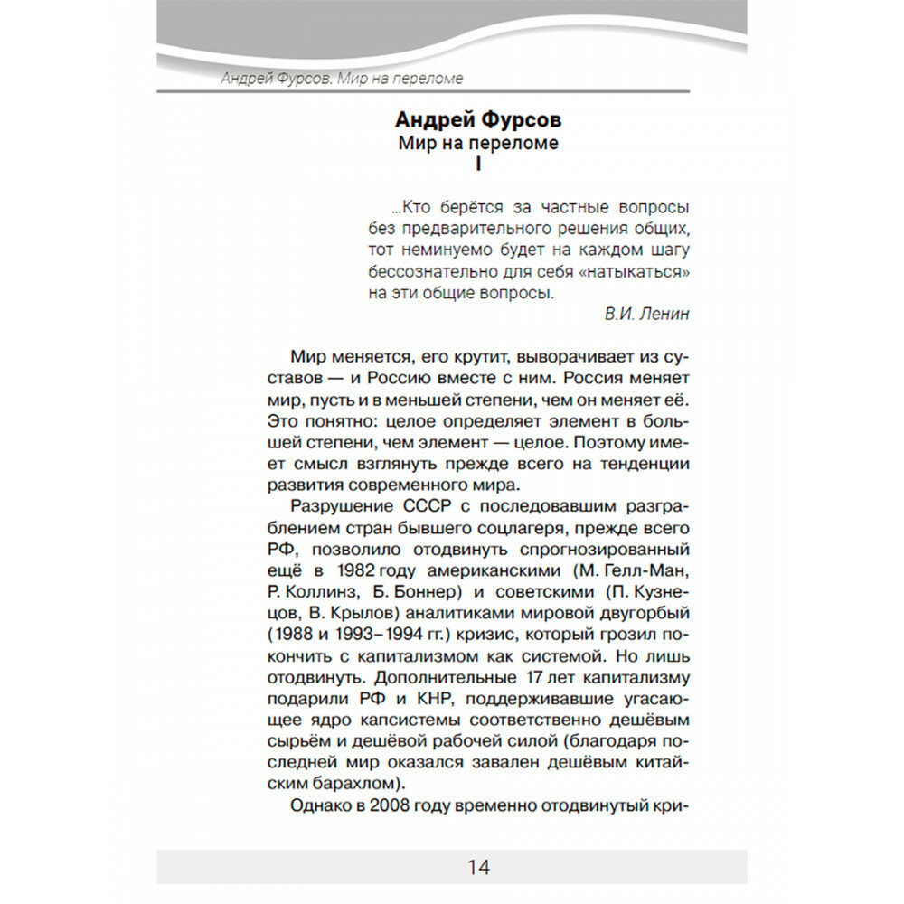 На эти и многие другие вопросы в данном сборнике статей дают свои ответы такие политологи, философы, мыслители и писатели, как А. Проханов, А. Фурсов, К. Сивков, Б. Марцинкевич, В. Аверьянов, Д. Перетолчин, А. Фефелов и др.