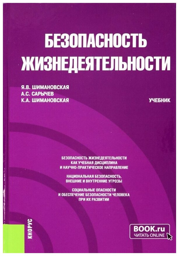 Безопасность жизнедеятельности. Учебник (Шимановская Янина Васильевна, Сарычев Александр Сергеевич, Шимановская Кристина Александровна); КноРус, 2023