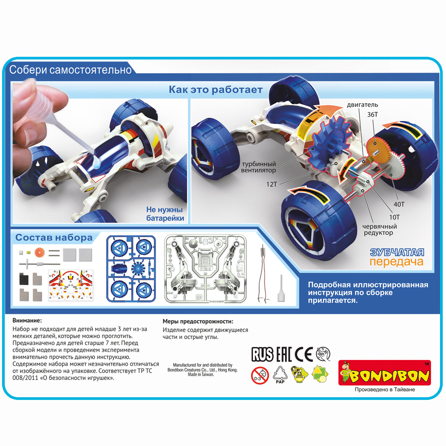 В наборе есть все необходимые детали для сборки автомобиля. Дополнительно понадобятся: чашка, соль, палочка, плоская отвертка, бокорезы.