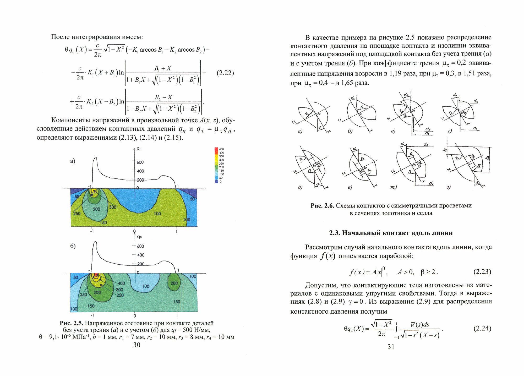 Рассмотрены вопросы создания методов расчета контактных характеристик - относительной площади контакта и плотности зазоров - в стыке шероховатых поверхностей неподвижных уплотнительных соединений путем совершенствования дискретной модели шероховатости и подходов к описанию контакта единичной неровности. Подробно рассмотрены: упругий контакт отдельной неровности с учетом влияния остальных контактирующих неровностей и упругопластический контакт с учетом влияния параметров упрочнения материала; вопросы контактирования шероховатой поверхности через слой покрытия, разгрузки предварительно нагруженных уплотнительных стыков, влияния повышенных температур на контактные характеристики.
