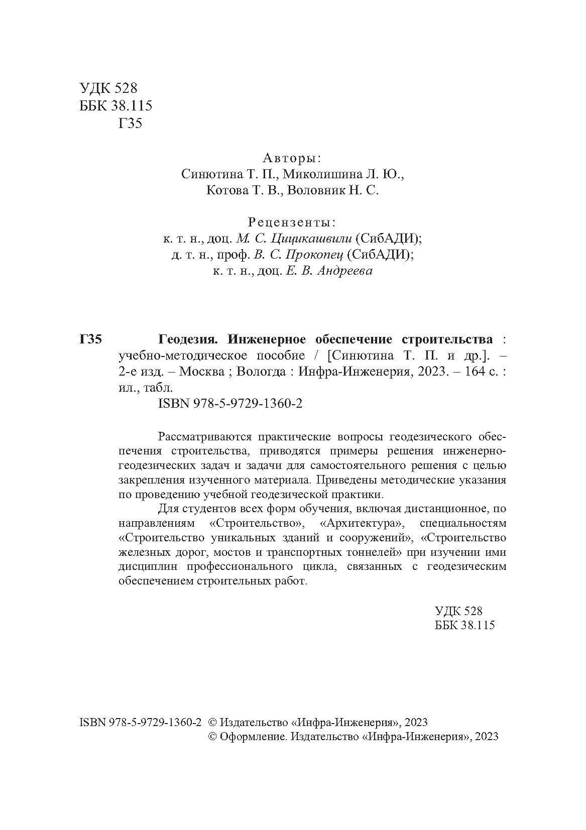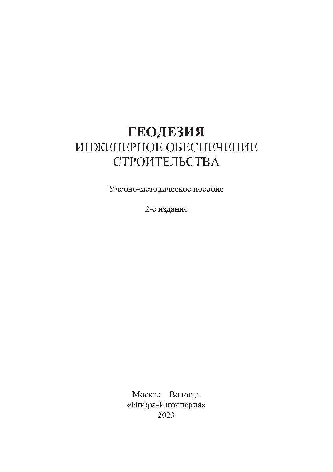 Геодезия Инженерное обеспечение строительства учебно-методическое пособие (Синютина Тамара Павловна, Миколишина Людмила Юрьевна, Котова Тамара Викторовна); Инфра-Инженерия, 2023