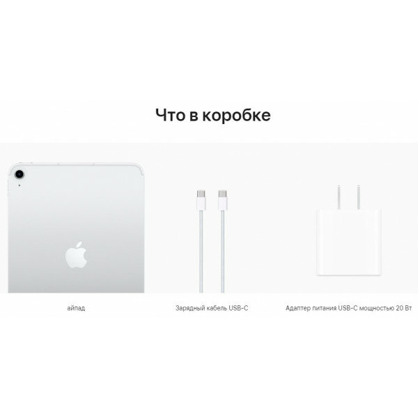 | Комплектация | - планшет; - кабель для зарядки USB-C (1 метр); - адаптер питания USB-C мощностью 20 Вт. |