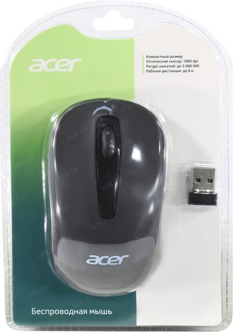 Мышь Acer OMR133, оптическая, беспроводная, USB, черный [zl.mceee.01g]