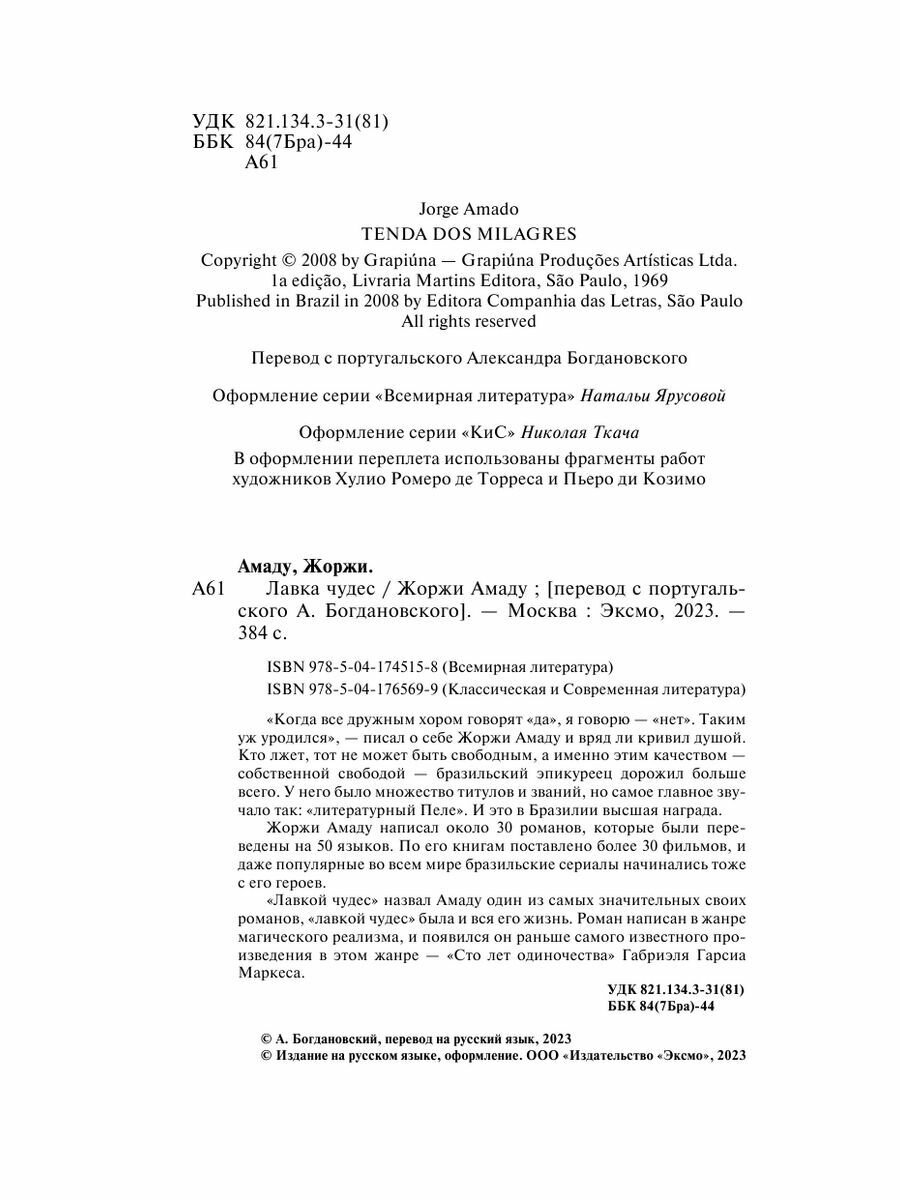 Книга: Лавка чудес (Жоржи Амаду); Эксмо, Редакция 1, 2023