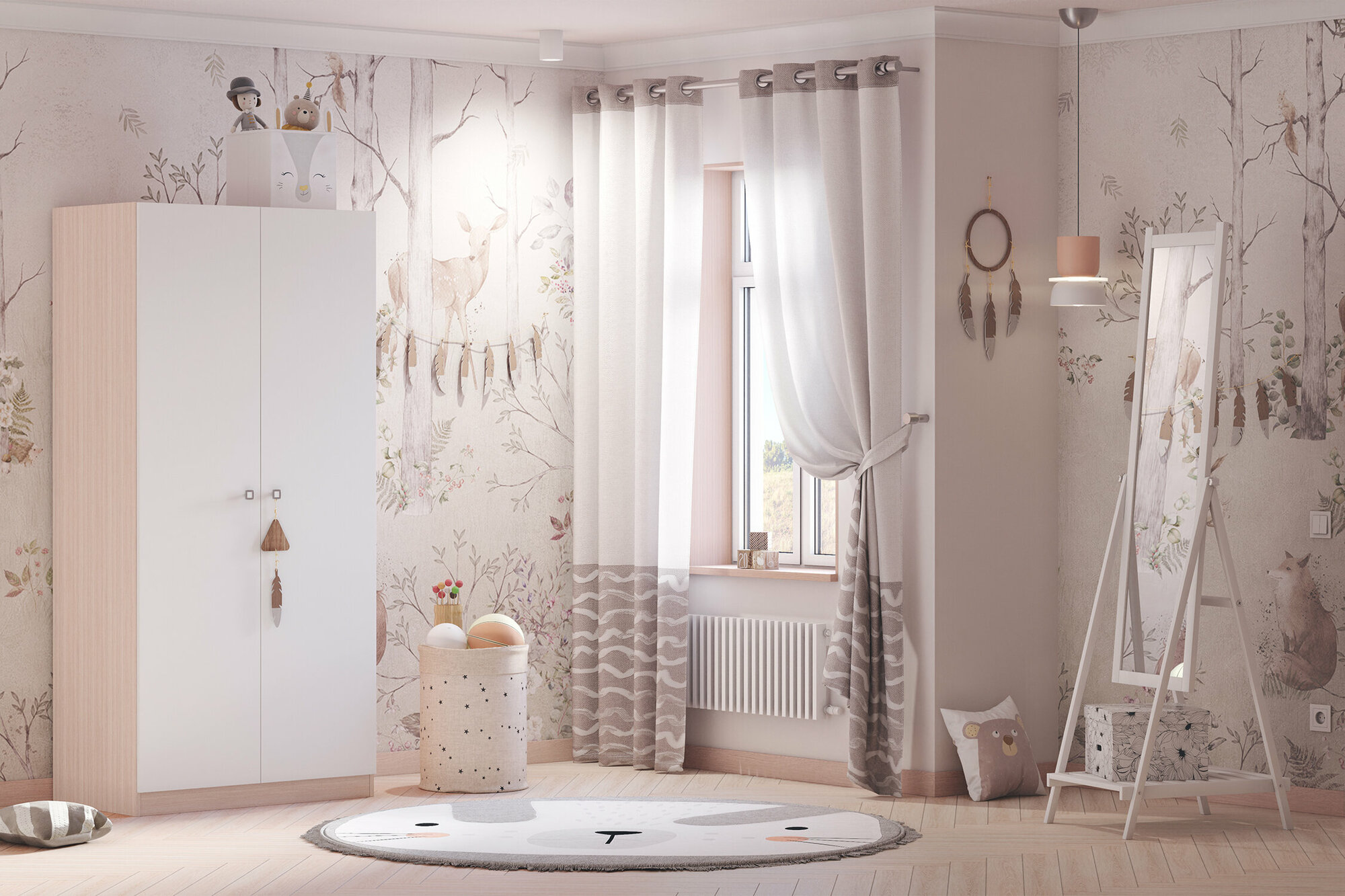 Шкаф двухсекционный Polini kids Simple дуб пастельный-белый
