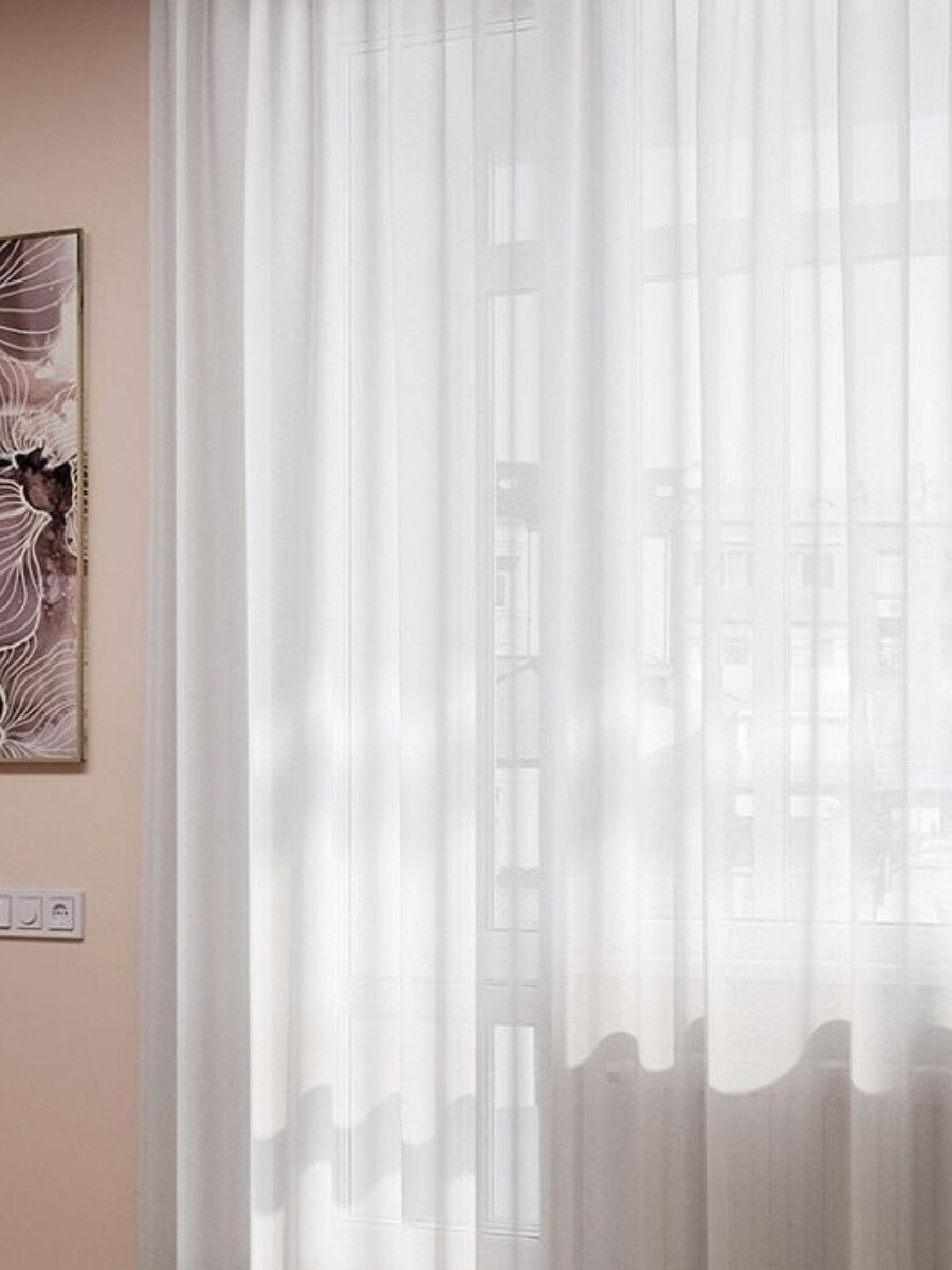 Однотонная струящая Вуаль - это универсальная ткань для тюля, она защищает помещение от посторонних глаз, пропускает солнечные лучи, наполняя помещение мягким рассеянным светом. Нижний край изделия выполнен с утяжелителем. Полупрозрачный тюль защищает помещение от посторонних глаз, пропускает солнечные лучи, наполняя помещение мягким рассеянным светом. При помощи шторной ленты для крючков легко регулировать ширину изделия и создавать аккуратные равномерные складки. Специальные шнурки позволят красиво задрапировать занавеску.