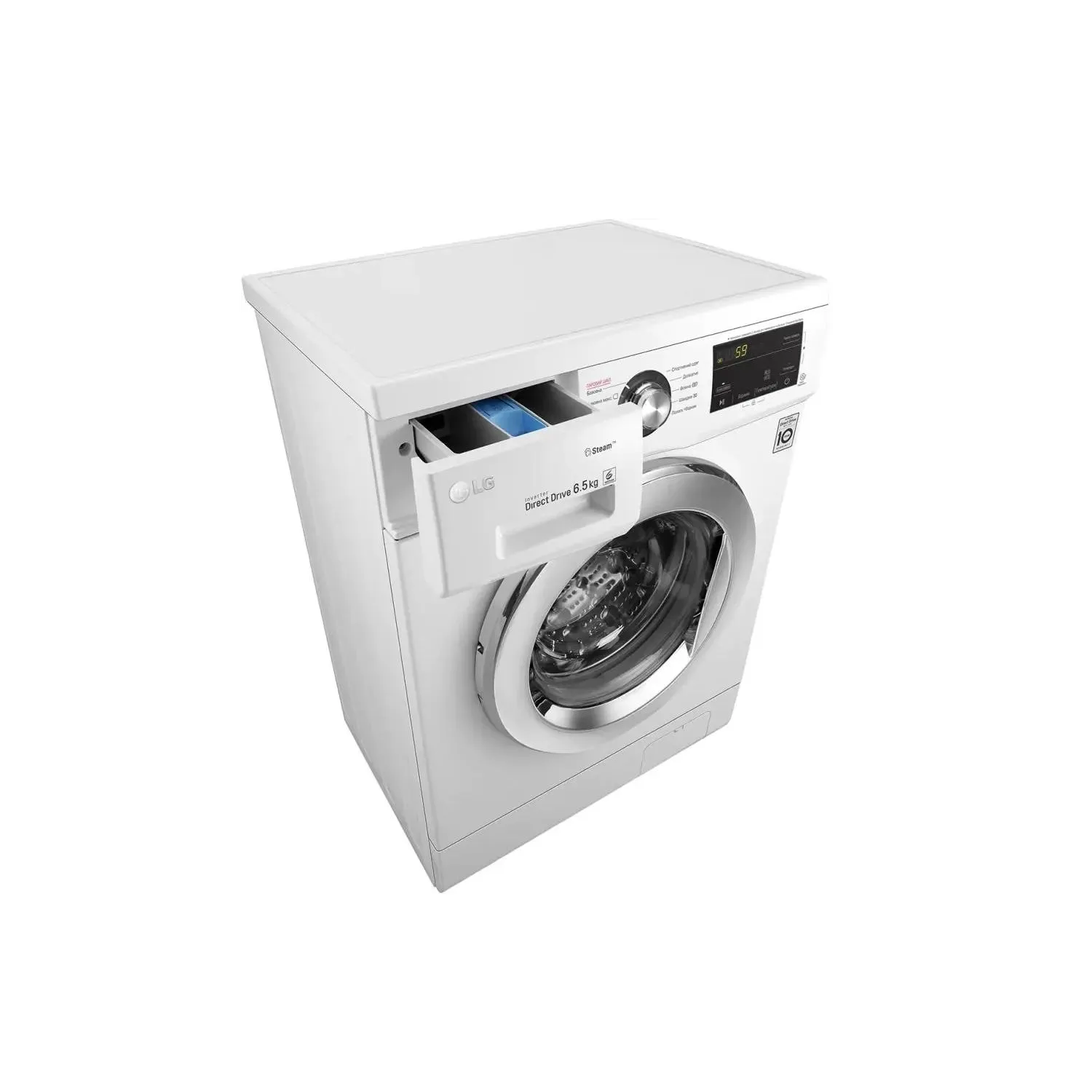 Стиральная машина LG имеет фронтальное строение, при котором люк располагается на передней панели. Он размещен очень удобно и имеет большой диаметр, чтобы вы могли комфортно расположить внутри белье. Общая вместительность барабана составила 6.5 кг.