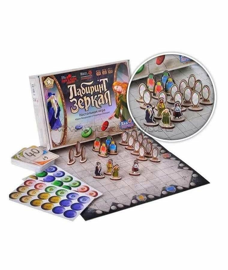 | Комплектация | поле из 4 частей, 16 жетонов рун, 16 жетонов амулетов, 16 деревянных фигурок зеркал, 4 деревянные фигурки порталов, 4 деревянные фигурки магов, 40 карт инициативы, 4 двусторонние карты заданий, 4 двусторонние карты-памятки, павила игры, упаковка |