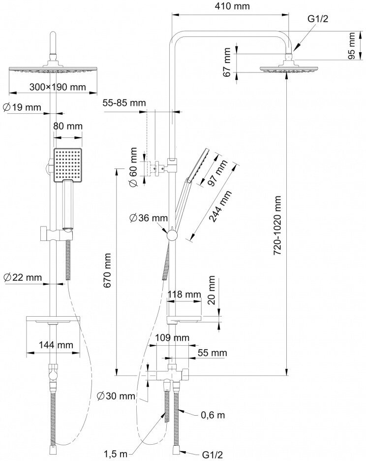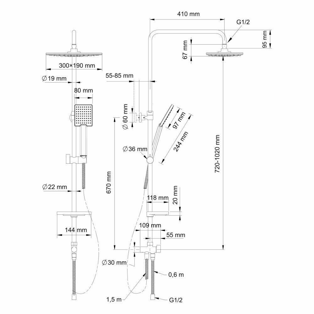 | ВКоробке | Душевая стойка - 1 шт. Верхний душ - 1 шт. Лейка - 1 шт. Шланг - 1 шт. Мыльница - 1 шт. Инструкция - 1 шт. |