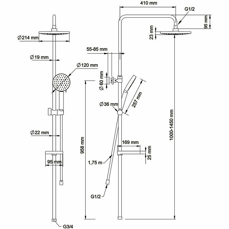 | Габариты верхнего душа | 215 |