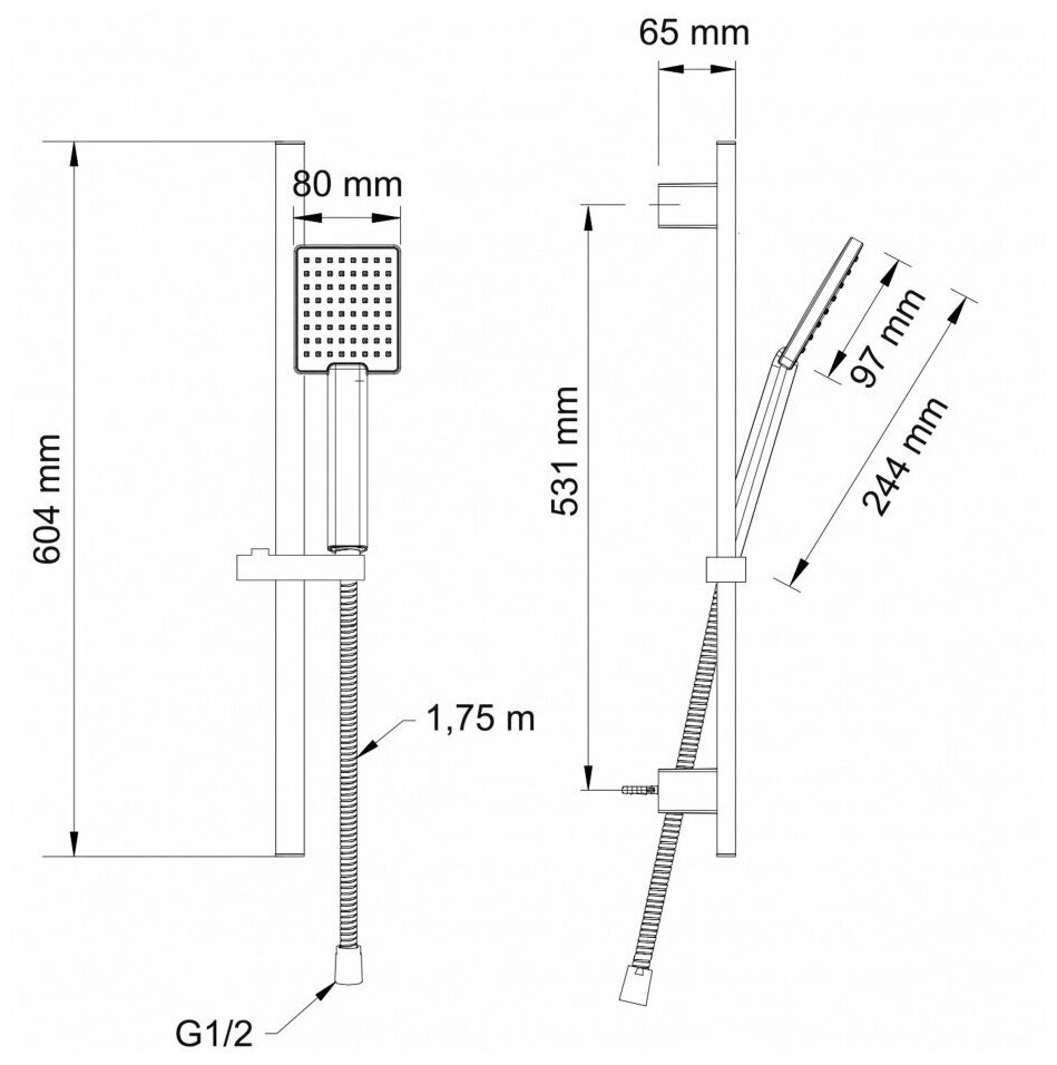 | ВКоробке | Душевая лейка - 1 шт. Душевая штанга - 1 шт. Шланг - 1 шт. Мыльница - 1 шт. Инструкция - 1 шт. |