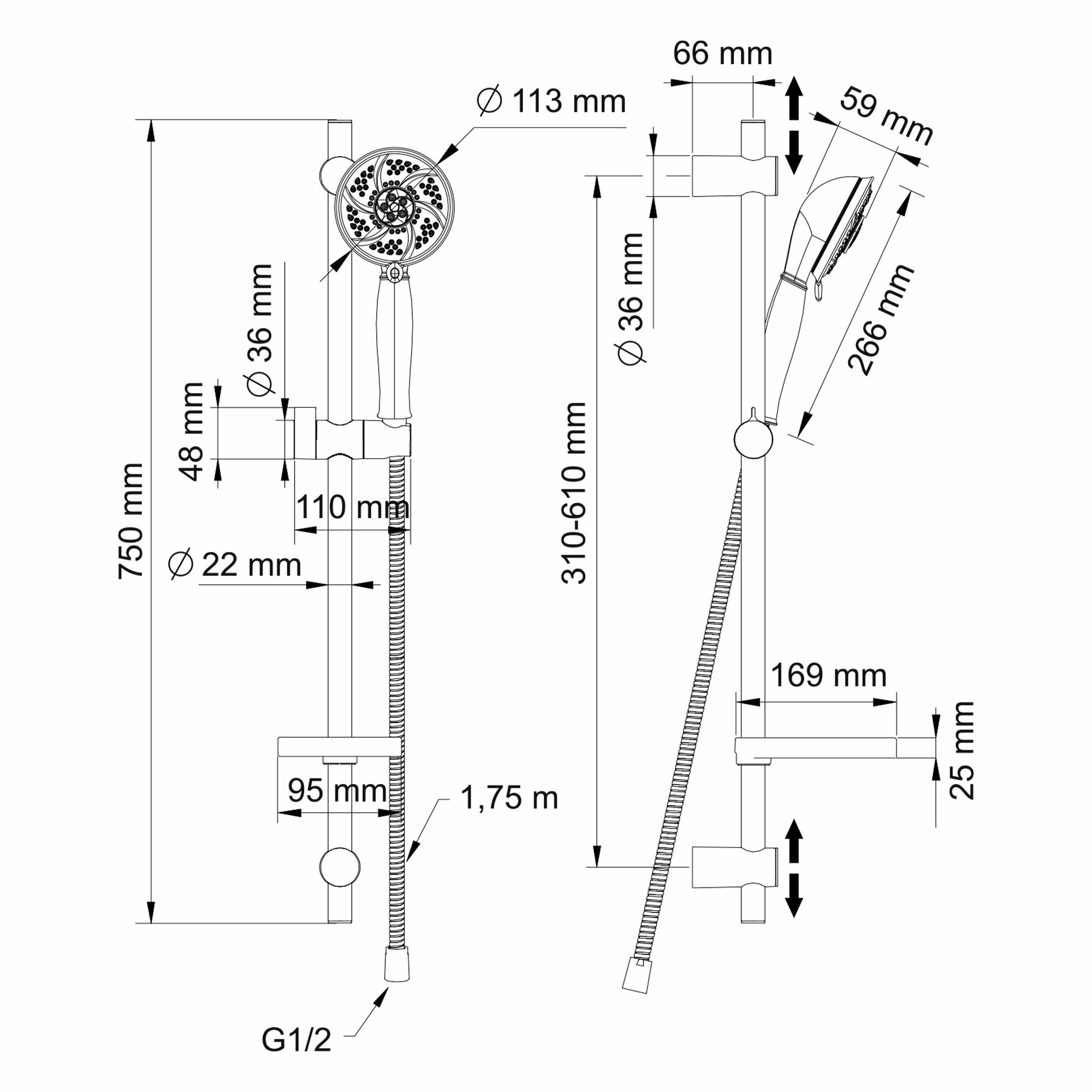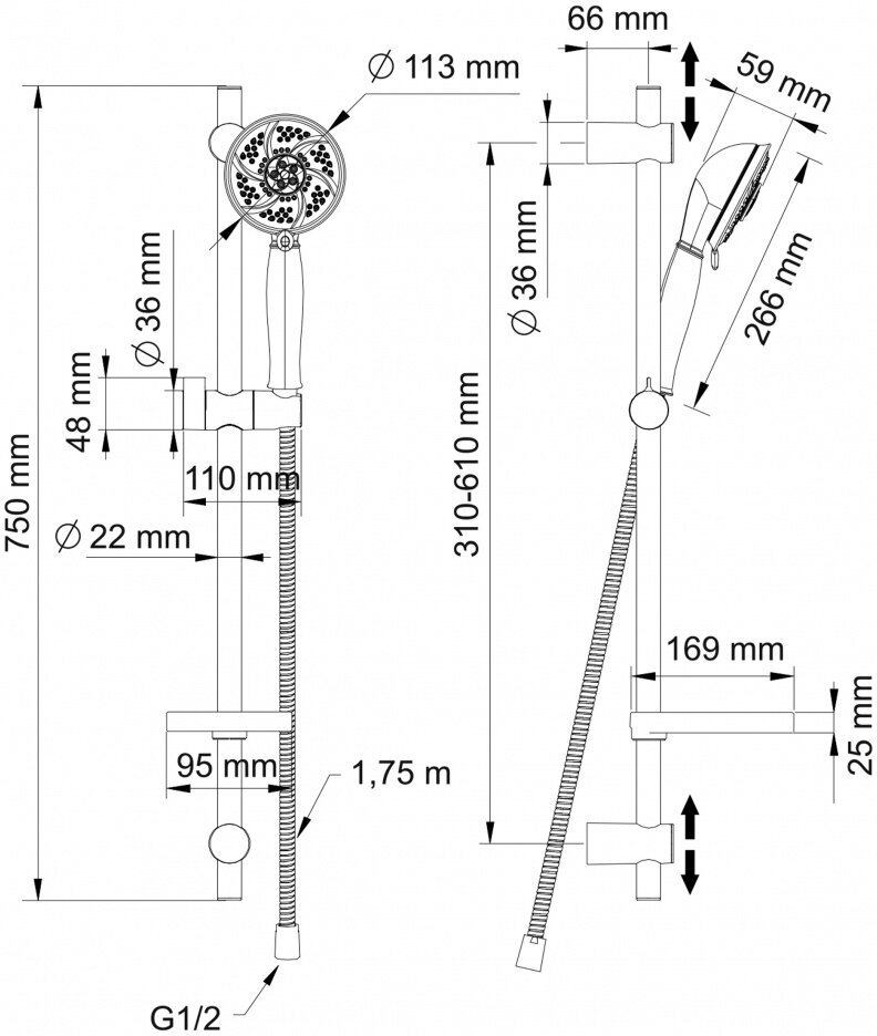 | Оснащение | душевая штанга, держатель для душа, душевой шланг |