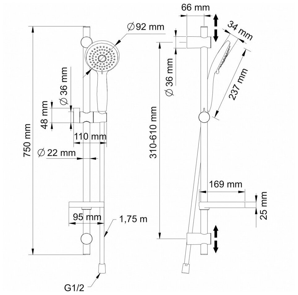 | Оснащение | душевой шланг,душевая штанга,держатель для душа |