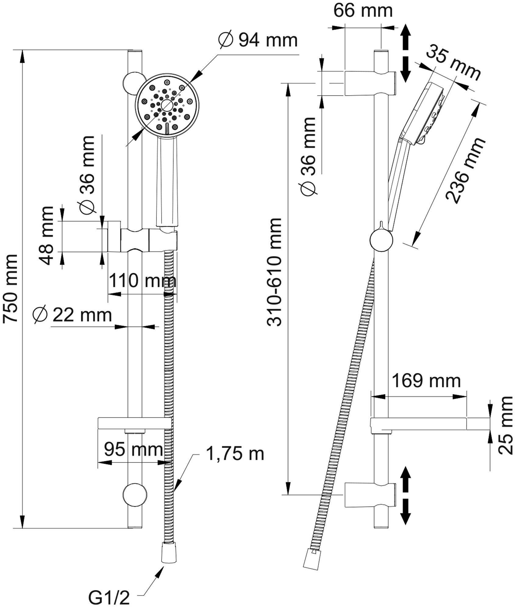 | Оснащение | душевая штанга, держатель для душа, душевой шланг |