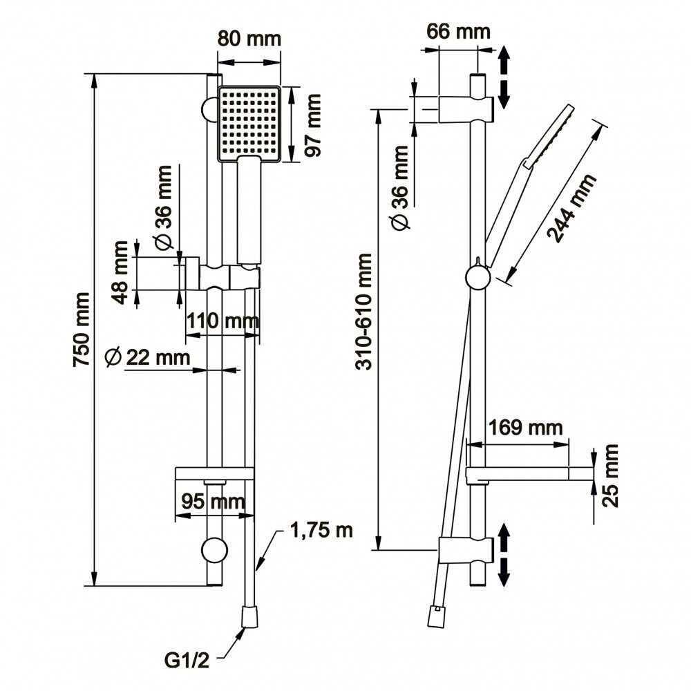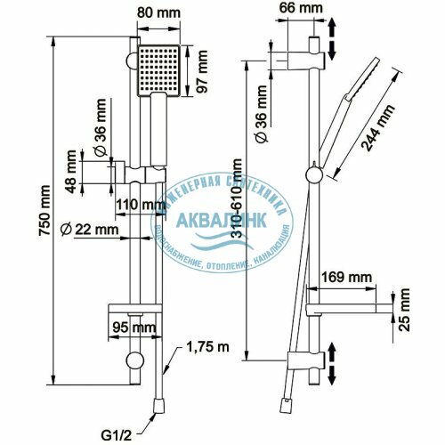 | Оснащение | душевая штанга, держатель для душа, душевой шланг |