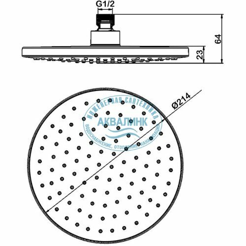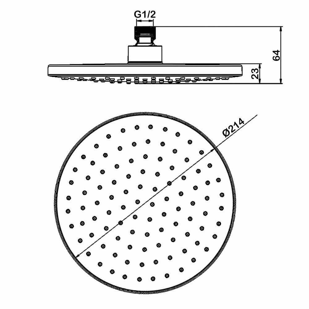- Диаметр верхнего душа: 214 мм.