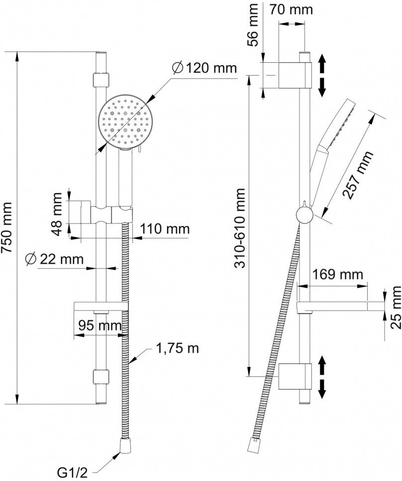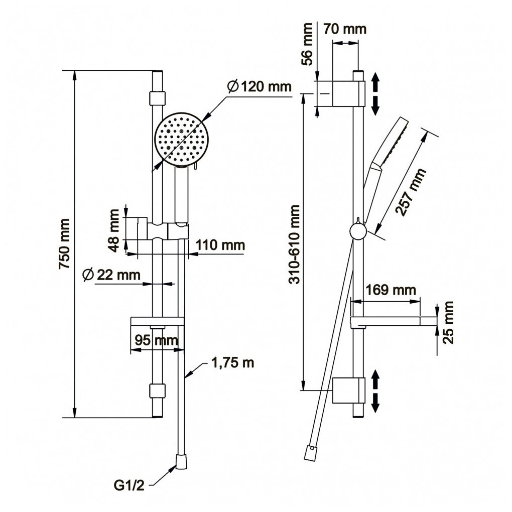 | Оснащение | душевая штанга, держатель для душа, душевой шланг |