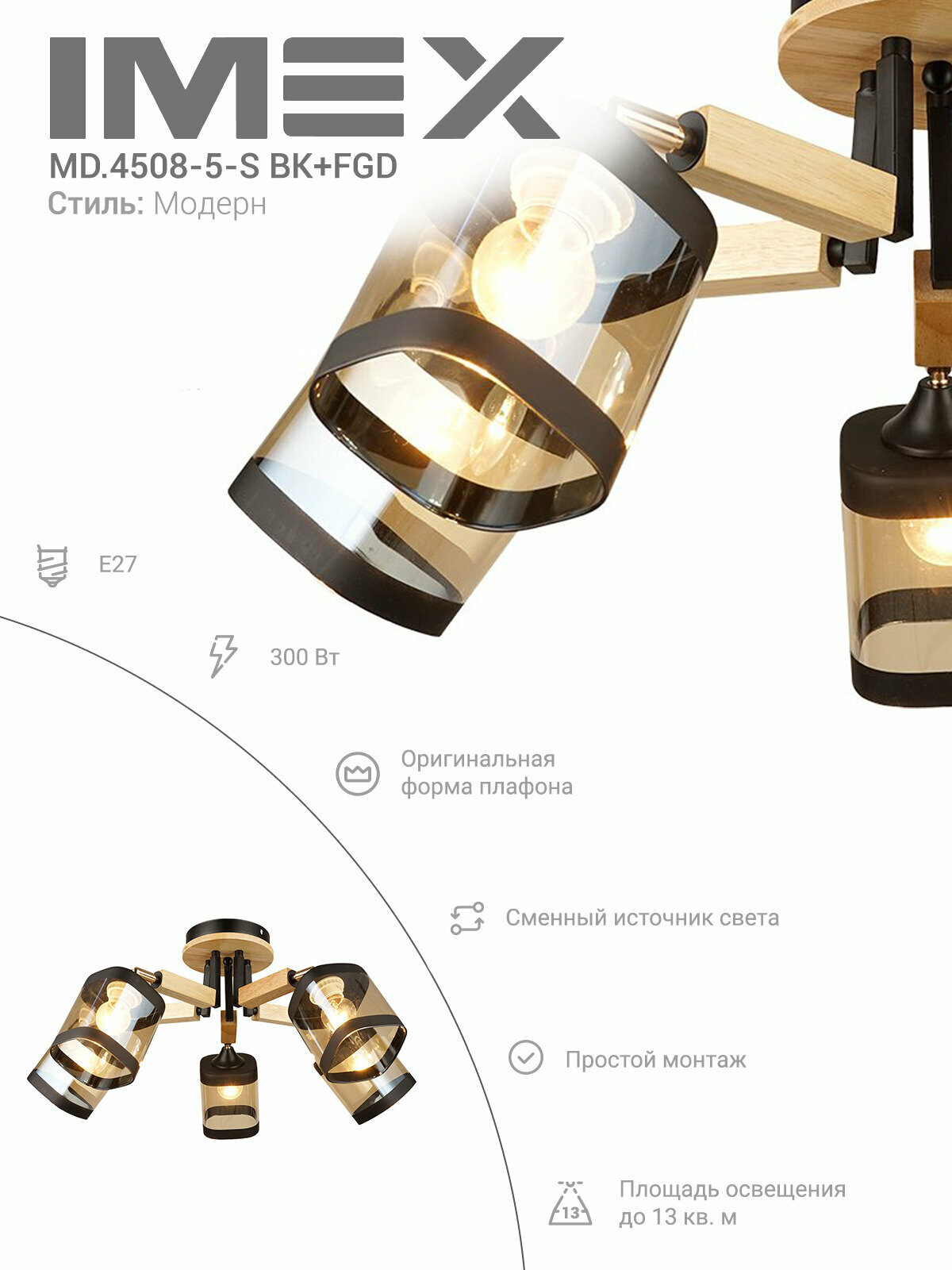 Потолочная люстра IMEX MD.4508-5-S BK+FGD